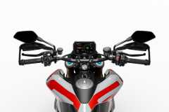 Wersja SP jest jeszcze bardziej wyrazista dzięki złotemu zawieszeniu Öhlins, zaciskom Brembo M50, białym kutym kołom i elementom karbonowym. Oprócz dedykowanego malowania, nawiązującego do 20 lat od powstania pierwszego prototypu, Hypermotard V2 SP wyróżnia się również rozwiązaniami technicznymi, które jeszcze bardziej podkreślają jego charakter.